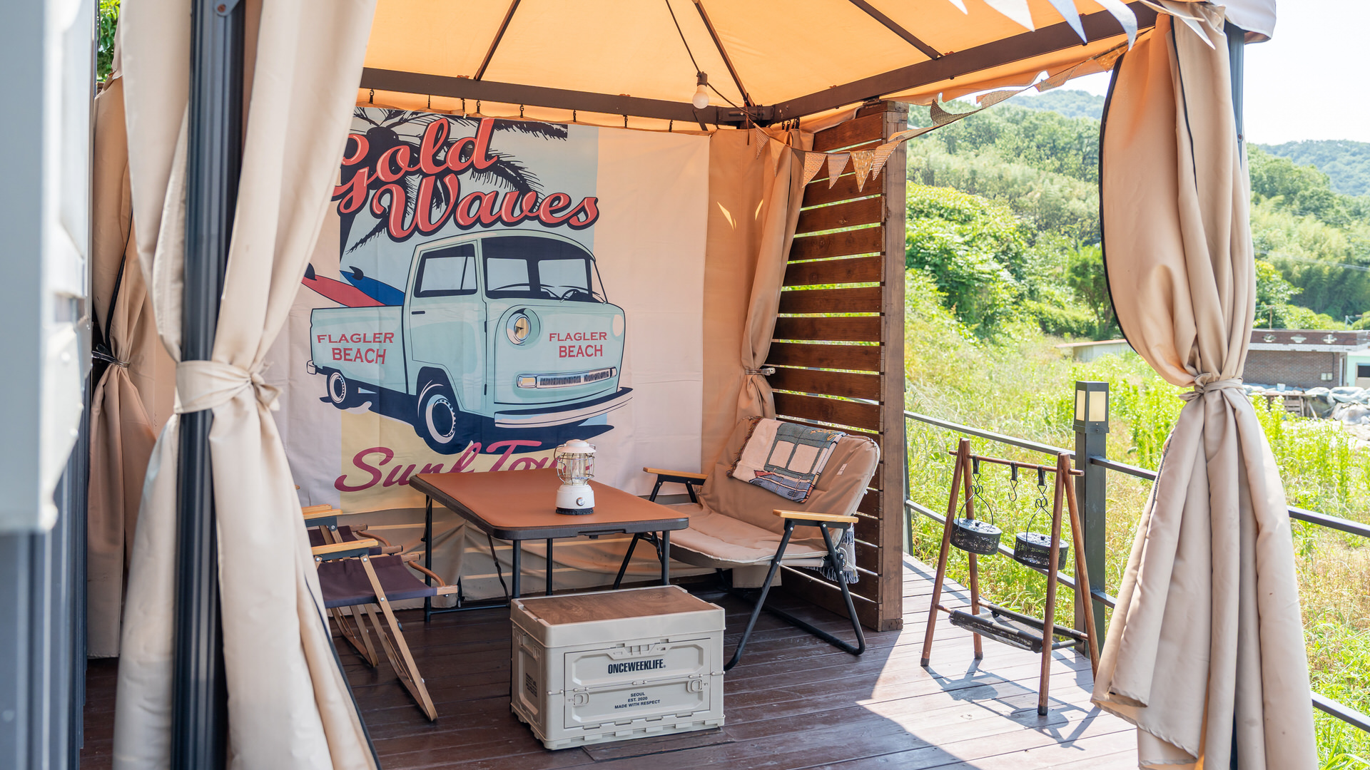 - 집기품목 : 커피포트, TV, 금연, 냉장고, 린스, 바디워시, 샴푸, 에어컨, 와이파이, 침대방, 타월, 인덕션, 전자레인지, 취사시설/도구, 화장대, 드라이기, 전기밥솥, 개별바비큐, VOD, 욕실용품, 남녀공용